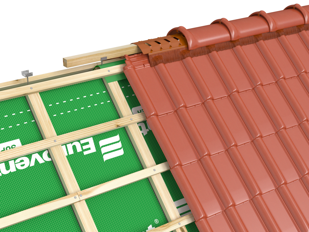 Møneventilen brukes som et element for ventilasjon og beskyttelse på møner og skrå takrygger.