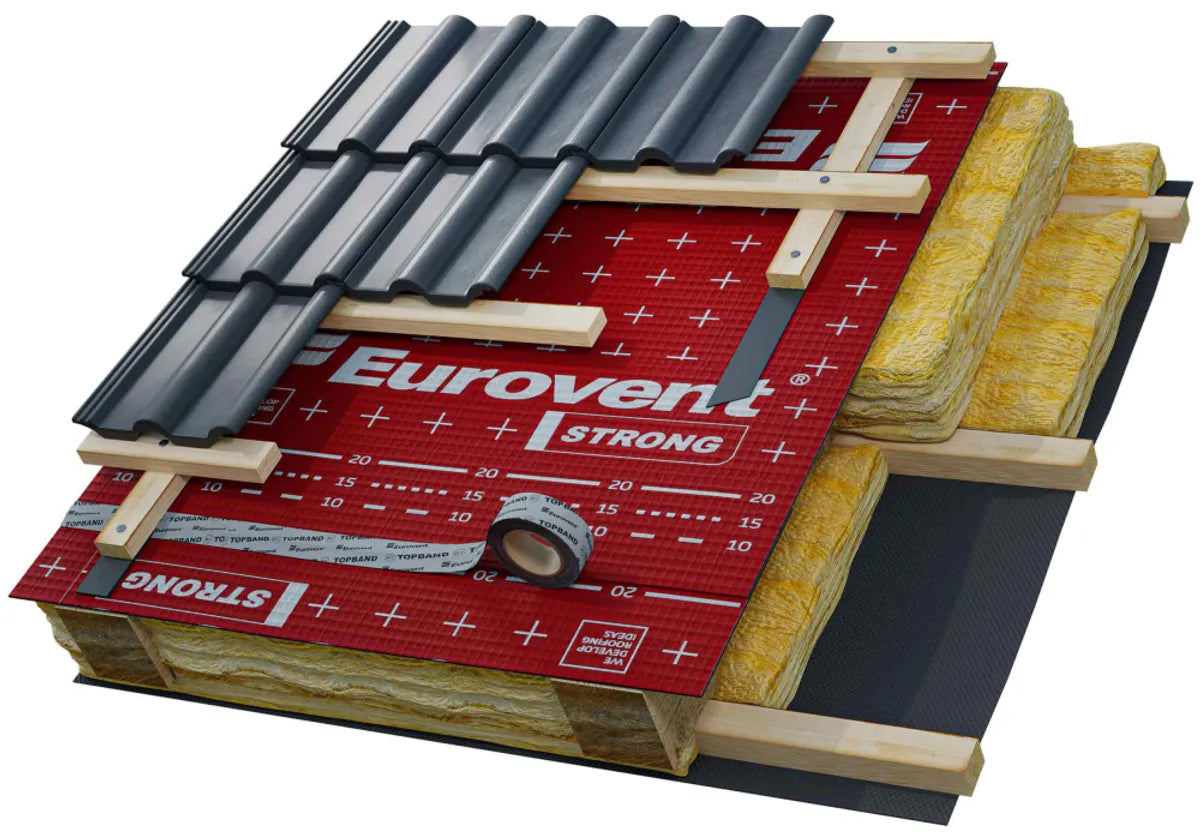 STRONG takmembran er en firelags, høytdampåpen membran beregnet for isolerte og ventilerte skråtak, også med full undertakskledning.