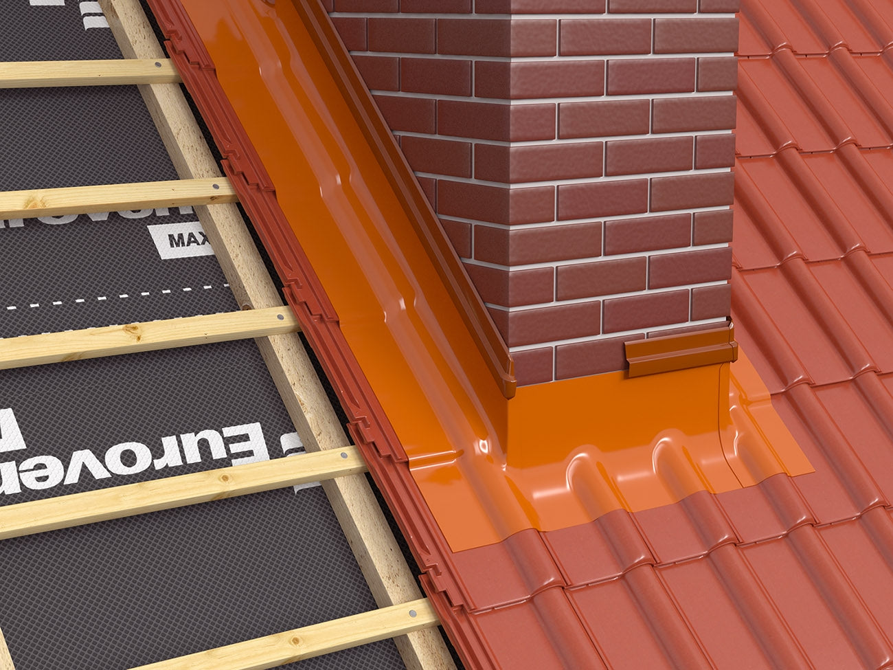 FLEX LINE brukes til å fullføre overgangen mellom skorstein og tak samt for å sikre tetting rundt skorsteinen.